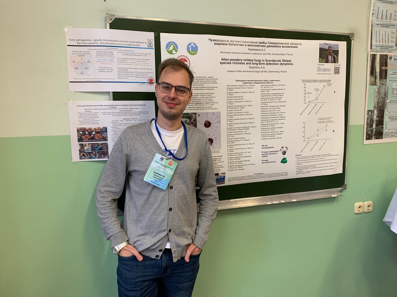 Будимиров А.С. представил постерный доклад «Чужеродные мучнисторосяные грибы Свердловской области: видовое богатство и многолетняя динамика выявления». В докладе рассмотрен вопрос, сколько чужеродных видов мучнисторосяных грибов появилось в Свердловской области в каждый из трёх периодов, на которые условно были разделены 150 лет изучения данной группы в регионе. Показано, что рост числа чужеродных видов мучнисторосяных грибов в области носит экспоненциальный характер, а наиболее резким он был между периодами 2 и 3 – то есть между 1960-1970-и и 2020-и гг. Поездка Будимирова А.С. стала возможна благодаря программе «Научная мобильность для молодых сотрудников».