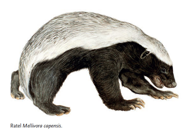 В настоящее время в мире существует только один вид медоедов – Mellivora capensis. Это весьма успешный вид, имеющий широкий ареал – в Африке, Индии, Юго-Западной Азии. Медоед (еще его называют лысый барсук или ратель), конечно же, любит мед, за что его недолюбливают местные жители, поскольку он разоряет пасеки, но кроме того, это хищник, охотящийся на мелких животных. Зверь славится своим бесстрашием и свирепостью, несмотря на свои небольшие размеры и вес, всего около 10 кг, он при необходимости отважно бросается на гиен, леопардов, львов и даже слонов.