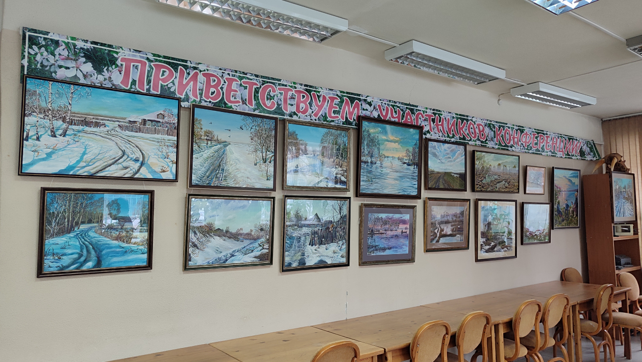 В зале на первом этаже Института экологии растений и животных открылась выставка картин директора Института д.б.н. М. Г. Головатина. На картинах Михаила Григорьевича уже совсем весна – много голубого неба, отражающегося в лужах, дающего бирюзовые тени на сыром, уже напитанном водой снегу. И вот уже появляется зелень, и утки летят над полем парой, а вот домашние гуси вывели гусят на лужайку и зацветает сирень.