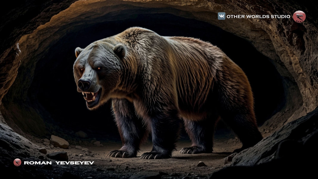 Рисунок малого или Русского пещерного медведя выполнен художником Полиной Митрошкиной, а большой пещерный медведь от Романа Евсеева.